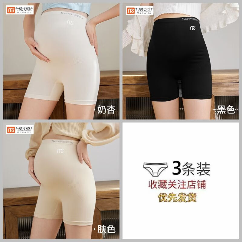 AILUKI莫代尔孕妇安全裤夏季防走光打底裤孕期免穿二合一无痕托腹短裤头 奶杏+黑色+肤色【高腰】 L 推荐【80-150】斤