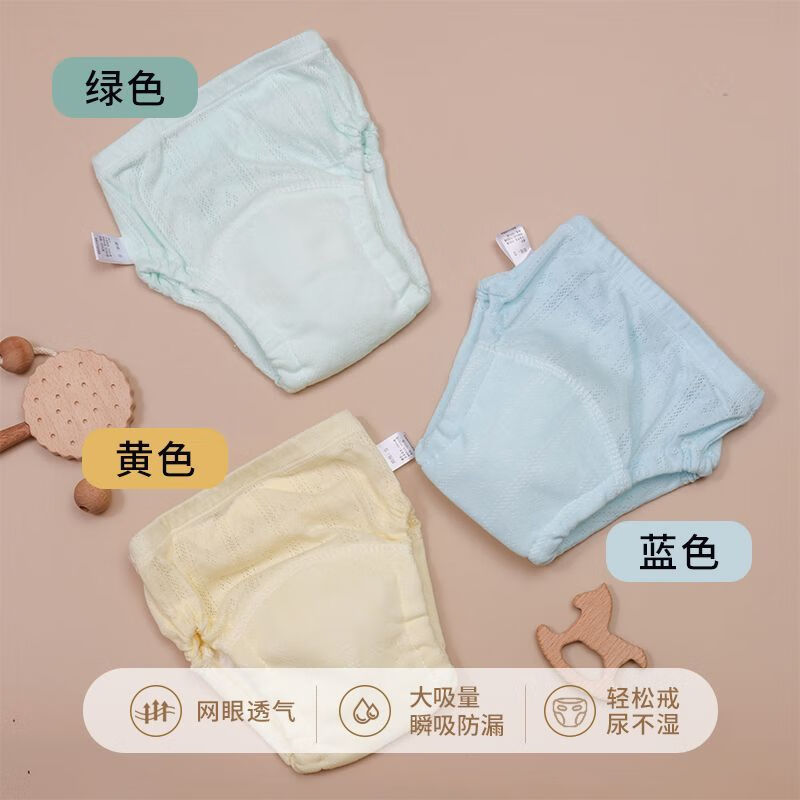 AILUKI宝宝戒尿不湿训练裤儿童如厕尿布裤兜纯棉防水防漏透气可洗小内裤 110码【推荐22-36斤】 蓝黄绿【升级纯棉抑菌透气】男宝3条