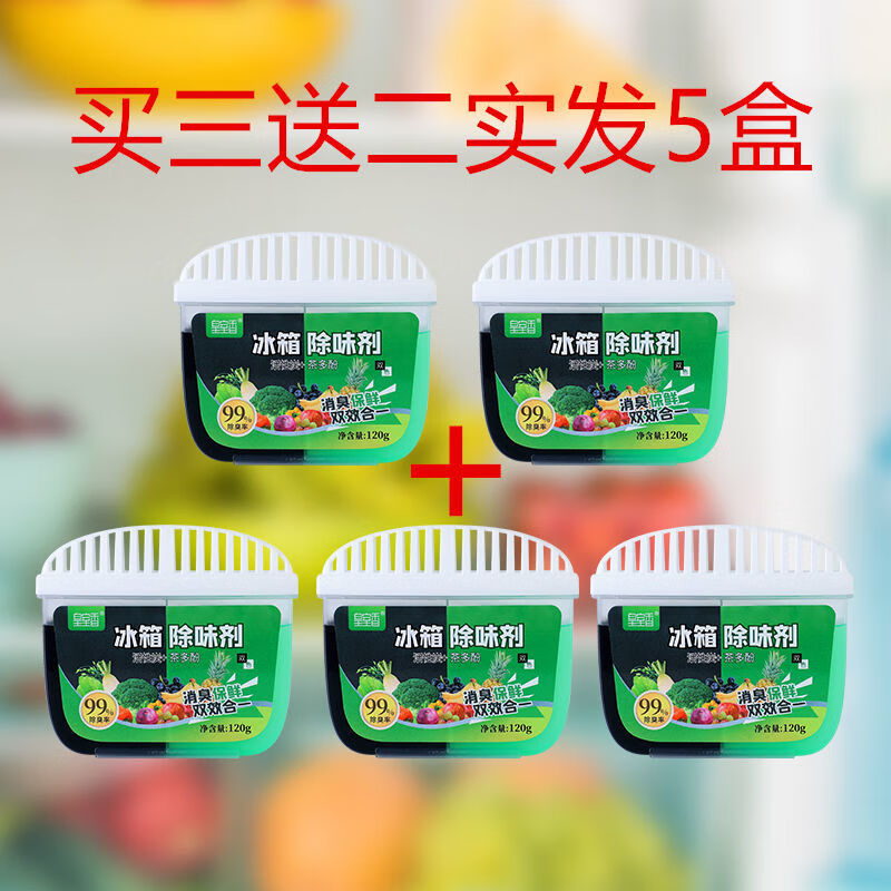 AILUKI冰箱除臭剂除异味神器家用活性炭除异味去味净化清新消臭保鲜盒 【活性炭+茶多酚】+消臭+保鲜e 买三送二共5盒【重度异味选择】*