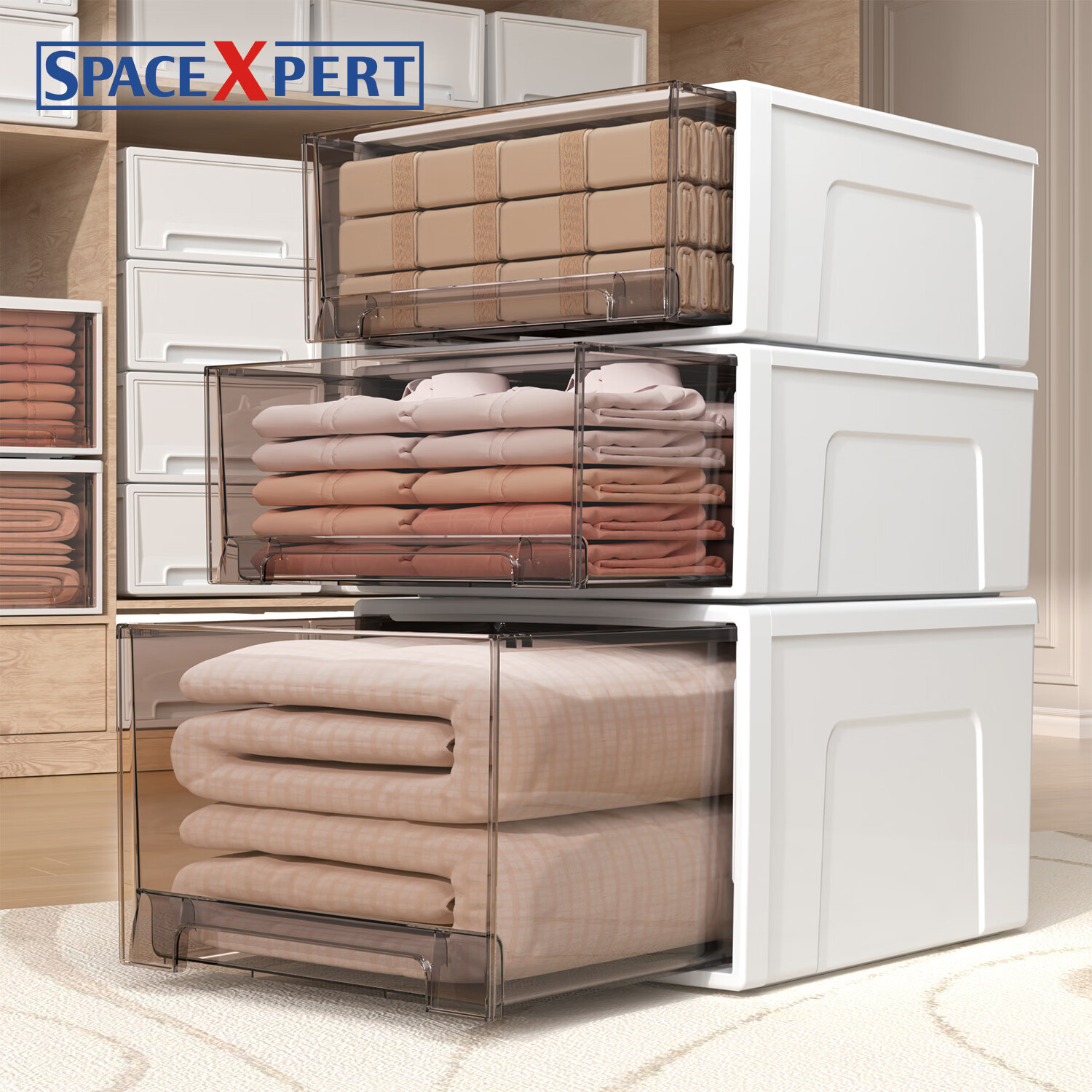 SPACEXPERT抽屉式桌面收纳盒labubu保护展示柜泡泡玛特手办玩具收纳置物架 66L【锁扣款】 47*47*29.5cm 透茶单只装