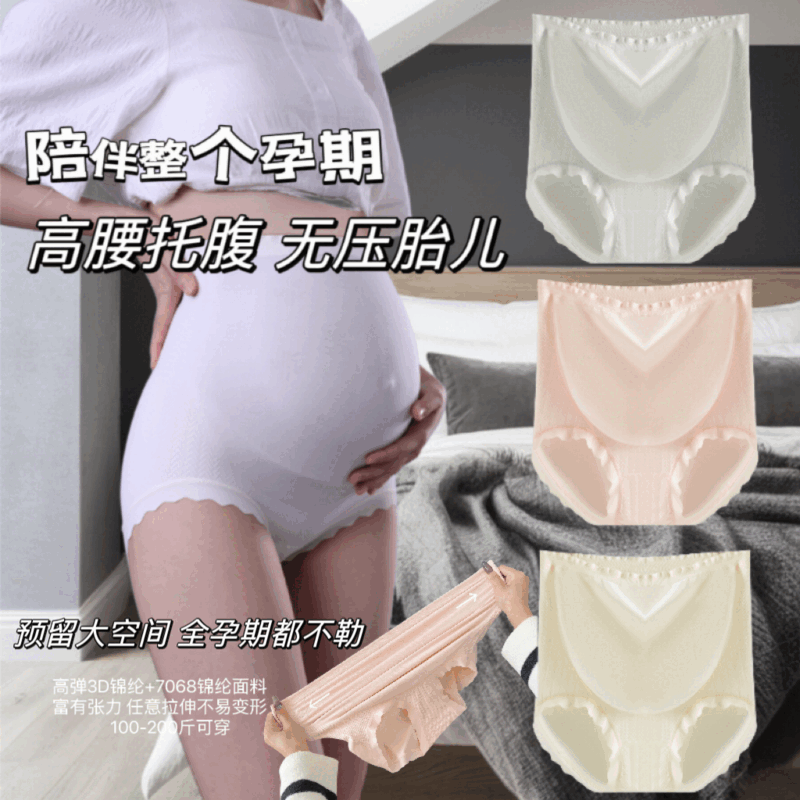 AILUKI夏天孕妇内裤女胖mm大码高腰托腹孕晚期冰丝无痕速干透气薄款孕期 4条必备装【白色+淡粉+香槟+卡其】 XL-建议-80-120斤