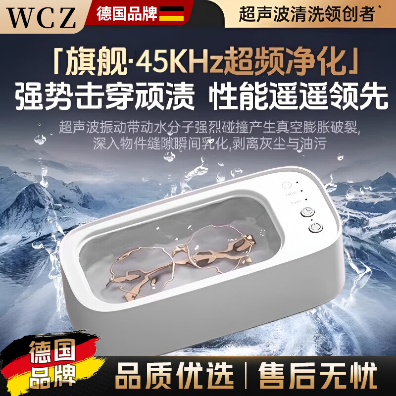 WCZ德国超声波眼镜清洗机便携式全自动家用首饰眼镜清洗器牙套清洗仪 【银光灰】充电版 三档定时