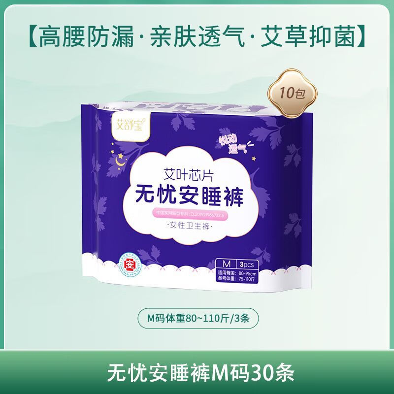 AILUKI艾舒宝医护级艾叶经期裤型卫生巾安心裤拉拉裤高腰防漏姨妈安睡裤 M码(适用75斤-110斤) 【医护级】经期防漏裤30条