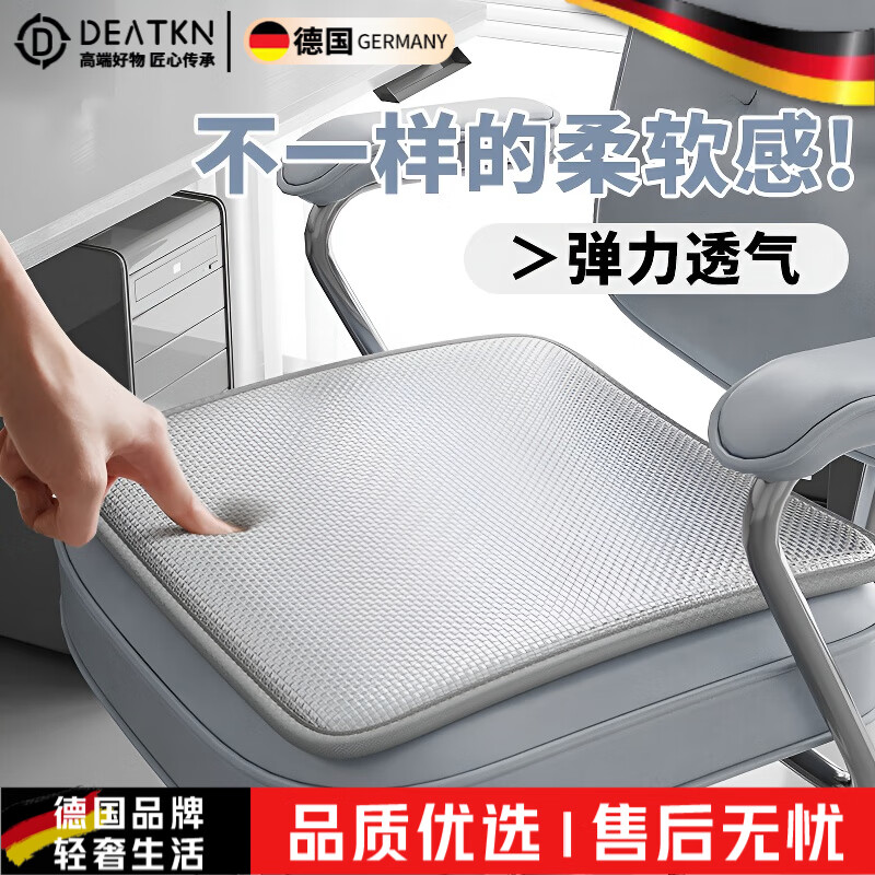 DEATKN德国坐垫四季通用透气椅子垫加厚增高不塌陷定制垫子办公室久坐屁 冰訸-弹力简约灰 40x40cm【凉爽面料】