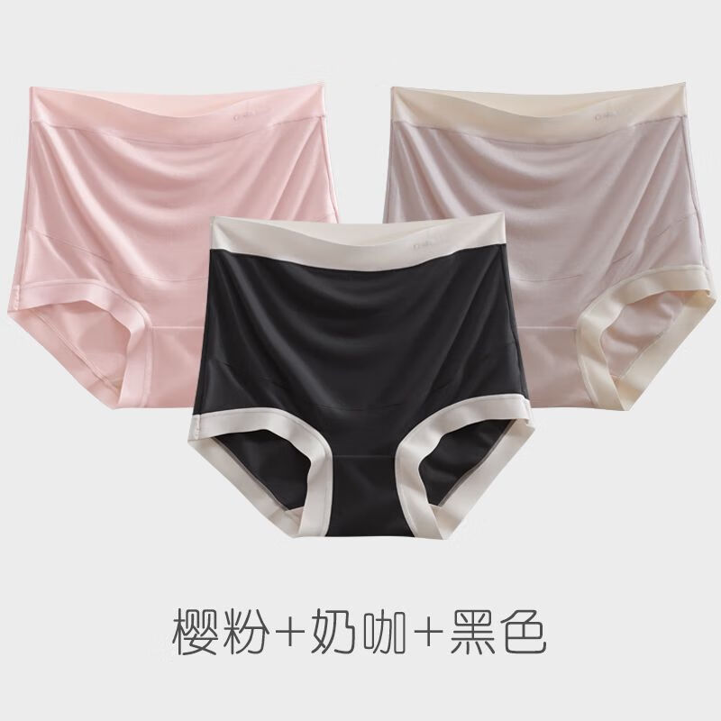 AILUKI夏孕妇内裤女莫代尔棉高腰托腹无痕透气薄款怀孕胖mm大码孕中晚期 樱粉+奶咖+黑色 XL-建议【90-130斤】