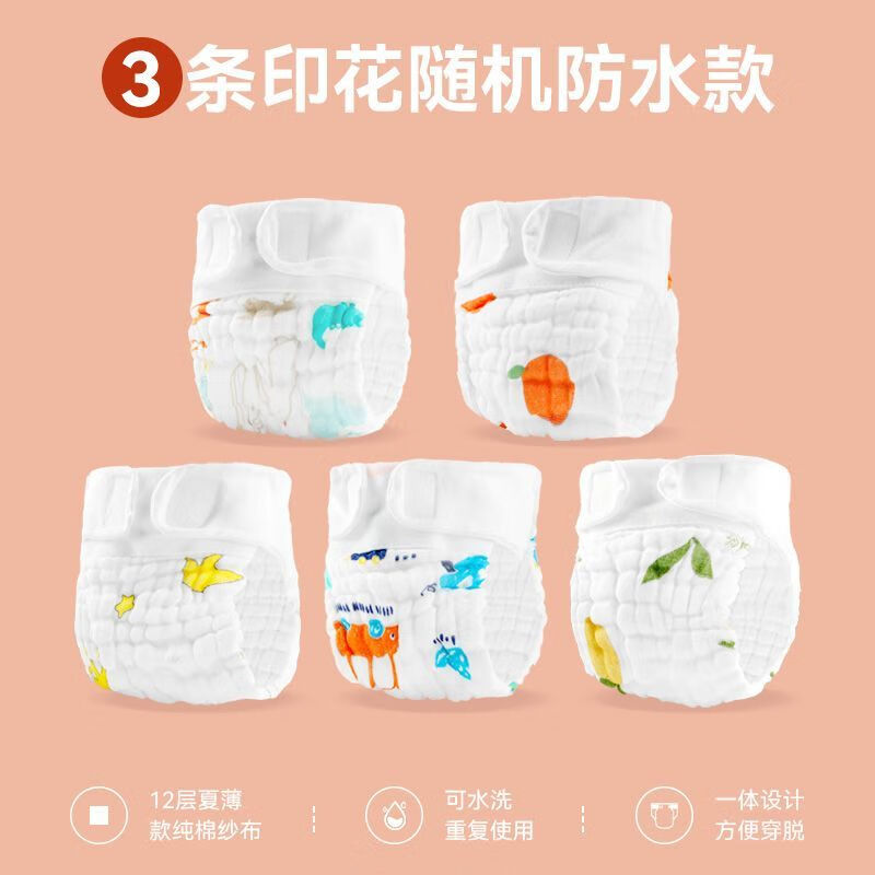 AILUKI10条防水尿布纯棉可水洗纱布婴儿新生宝宝尿片初生尿布裤兜芥介子 【推荐0-8斤宝宝】M码 四季抑菌透气【一体尿布】萌趣3条