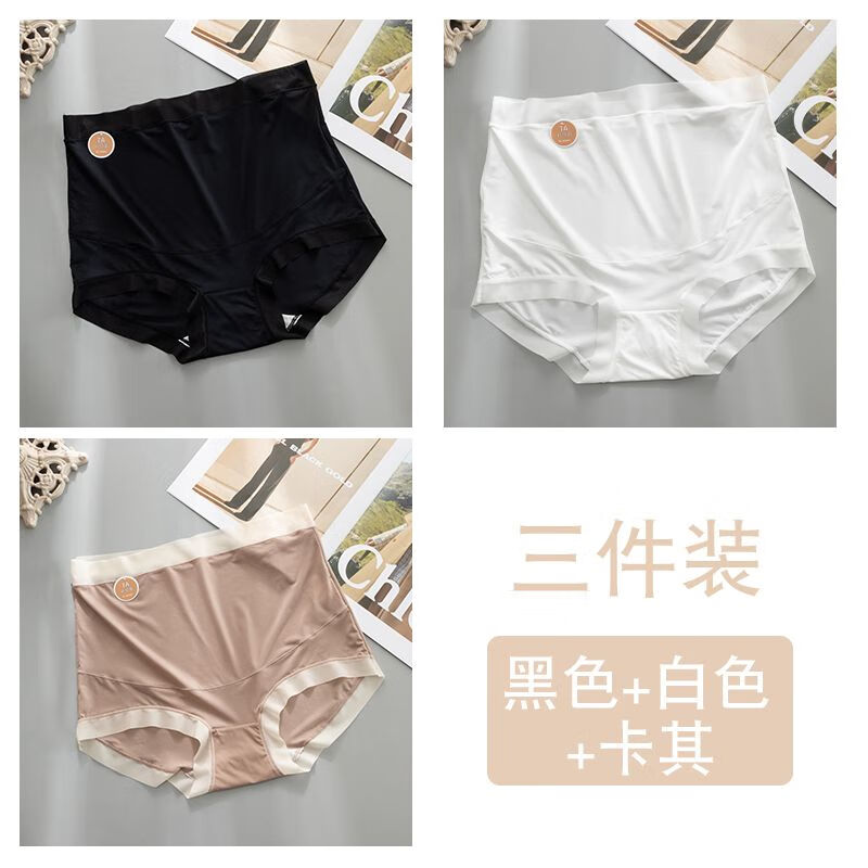 AILUKI冰丝无痕孕妇内裤女纯棉胖mm大码200斤孕早期中晚期孕期专用薄款 黑色+白色+卡其 XL-建议【80-120斤】