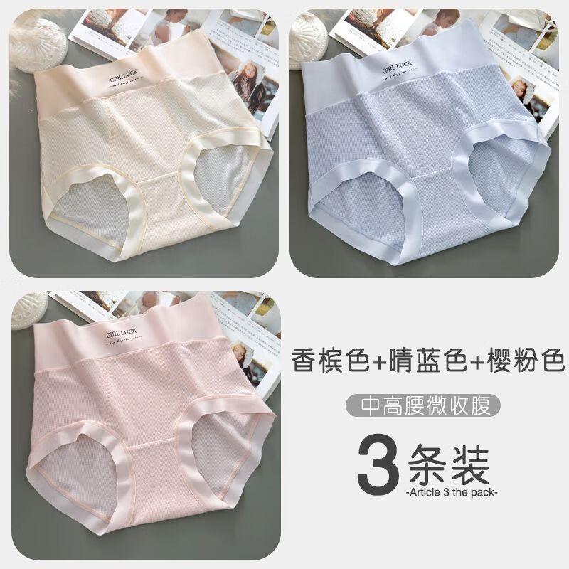 AILUKI孕妇内裤女纯棉抗菌高腰托腹提臀怀孕专用早中晚期大码内裤女孕期 香槟色+晴蓝色+樱粉色 XL【建议-85-125斤】