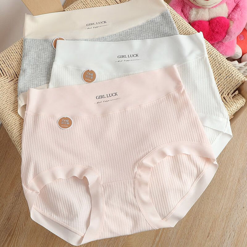 AILUKI高腰剖腹产专用孕妇内裤女纯棉抑菌收腹胖妹妹大码200斤无痕透气 花灰+米白+樱粉 2XL-建议-130-170斤