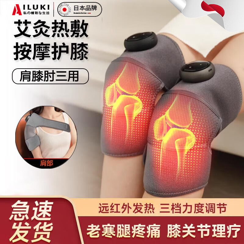 AILUKI日本膝盖热敷按摩仪器电加热护膝男女士关节保暖发热老寒腿秋冬 旗舰电热款【灰色1只装】3档恒温热敷+3档震动按摩+3大