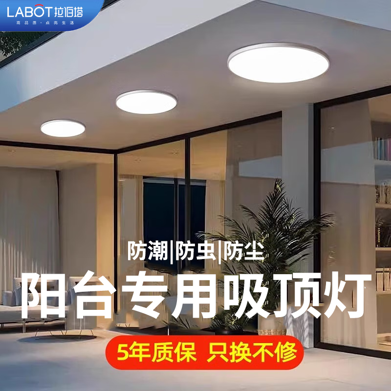 拉伯塔户外阳台灯led吸顶灯三防厨房卫生间浴室卧室走廊中山灯具超薄 高亮三防款【20W】白光23CM 【雅白】高亮三防款
