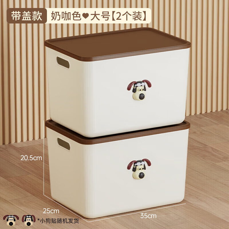 稻草熊(DOCOXO)家用塑料收纳箱带盖简约桌面储物篮透明整理置物筐化妆品洗漱用品 咖啡色带盖【2个装含狗头贴】