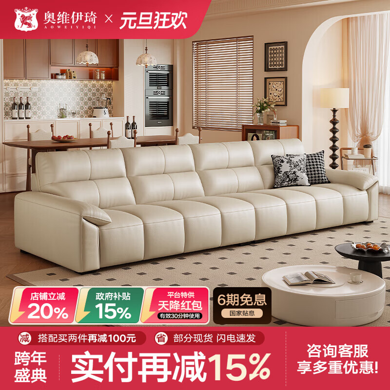 奥维伊琦国家补贴劳伦斯直排皮艺沙发头层牛皮全真皮客厅2025新款沙发家具 3.2米直排多人位+真皮脚踏 【旗舰版(全真皮)】2.6mm加厚头层黄牛皮