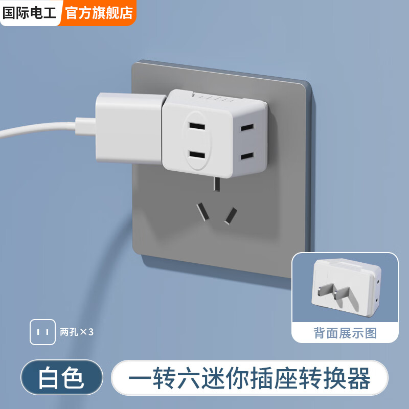 国际电工一转六迷你插座转换器带USB电源转换插座卧室厨房床头一转多拓展 【一转六】白色