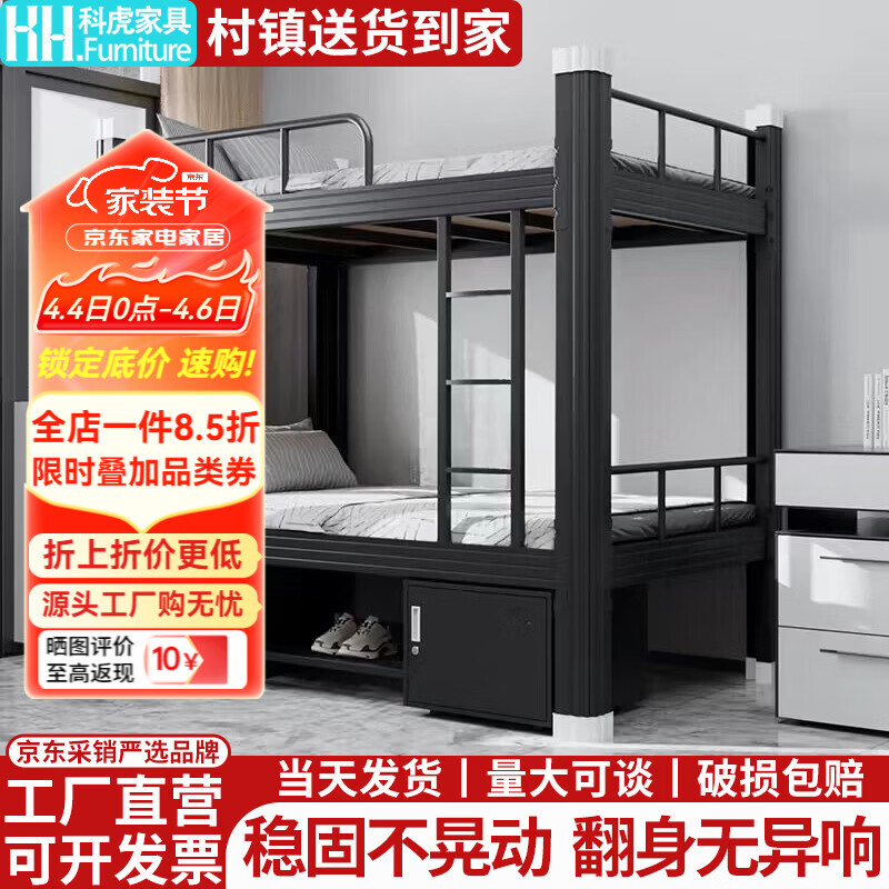 科虎上下铺铁艺双层床员工宿舍高低床寝室成人铁架子床钢制加高护栏 1.5m宽白色单床【送床板x2】