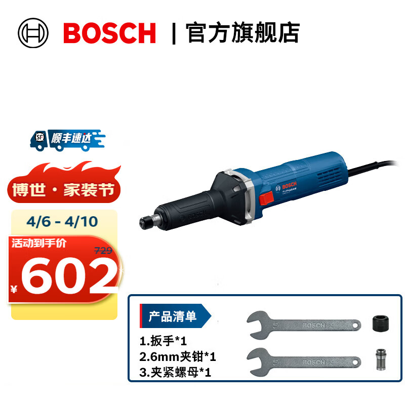 博世(BOSCH)GGS 5 LS专业级直磨机大功率高效打磨机精准抛光安全手持电磨机 官方标配