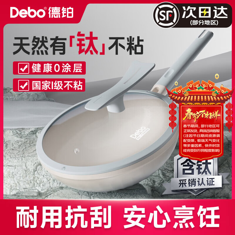 Debo德铂埃菲尔炒锅含钛0涂层陶瓷炒锅煎锅国标一级不沾锅不挑灶具 新钛陶耐磨款 32cm