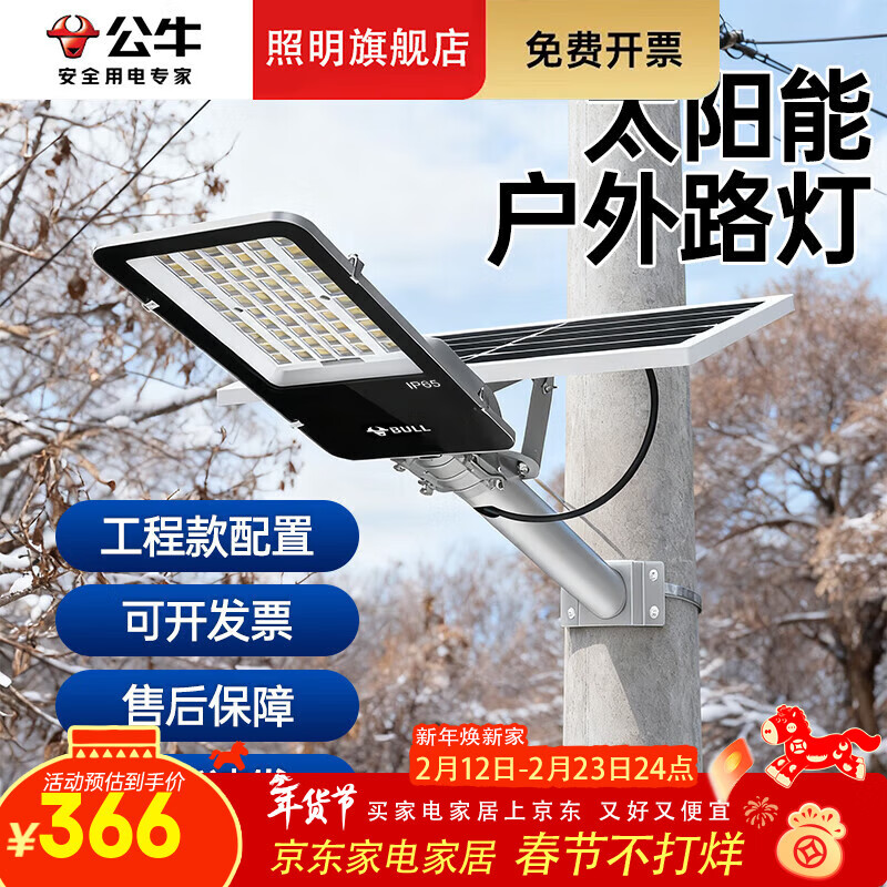 公牛2026新款太阳能户外庭院灯农村家用防水室内LED照明人体感应路灯 标亮500W型+光感+遥控+照约150平