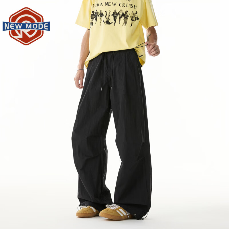 NEW OR MODE美式皱褶速干运动伞兵裤子男夏季薄款休闲宽松运动工装直筒长裤子 黑色【高品质】 M 【建议90-110斤】