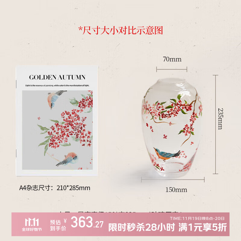 蜡笔派(Nabis)红果果系列手绘收藏丹桂花瓶|郭俊池联名|琉璃客厅摆件礼盒 月涧丹桂-花瓶(小号直径15*高) 23.5cm