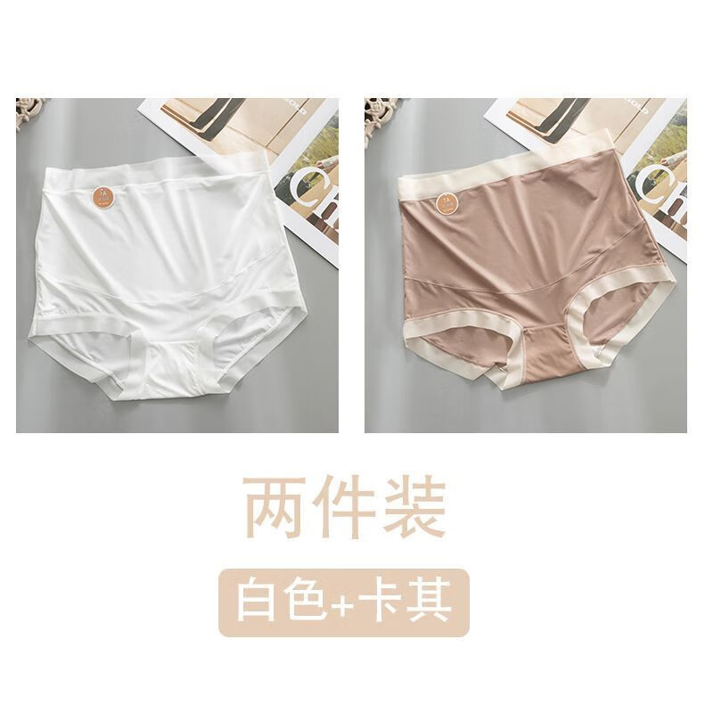 AILUKI新款孕妇内裤高腰托腹女大码200斤中晚期无痕抗菌三角裤头夏季薄 白色+卡其 XL 80-120斤