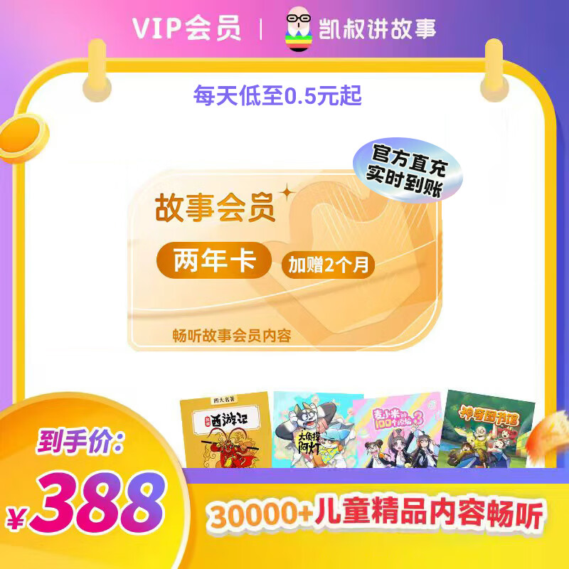 【正版加赠2个月】凯叔讲故事会员 西游记讲历史三国演义口袋神探 手机号直冲 双年卡