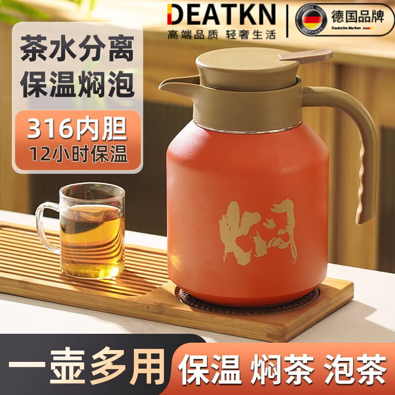 DEATKN保温焖茶壶大容量316不锈钢茶水分离闷泡壶办公室家用 1.8L [活力橙-][316不锈钢+加长茶
