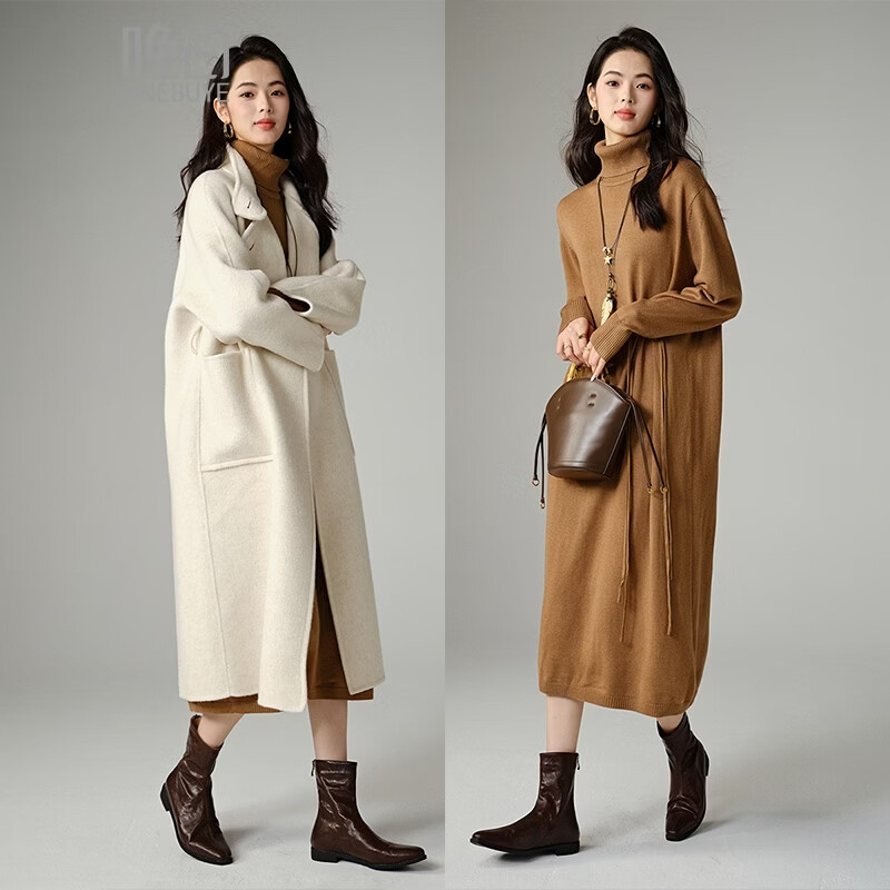 晚白【断码清仓】时尚裙子宽松休闲高领纯色盘扣连衣裙 驼色 S