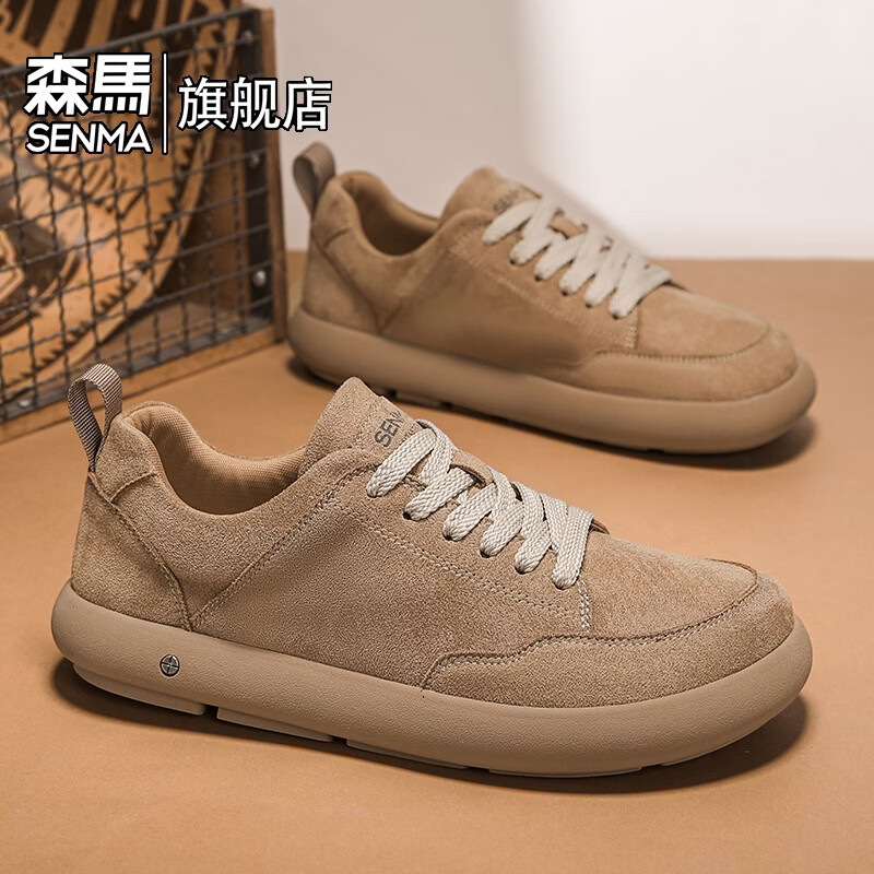 森馬男鞋2026年新款夏季潮牌百搭休闲运动低帮板鞋男士厚底防滑德训鞋 卡其【基础款】 39 标准码数/现货秒发