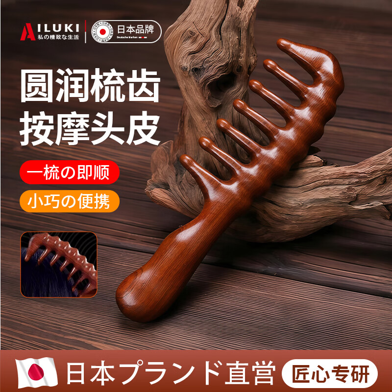 AILUKI日本檀木大齿卷发梳子宽卷发梳女士烫发后专用防静电按摩头皮经络 金丝檀木水滴头大齿梳