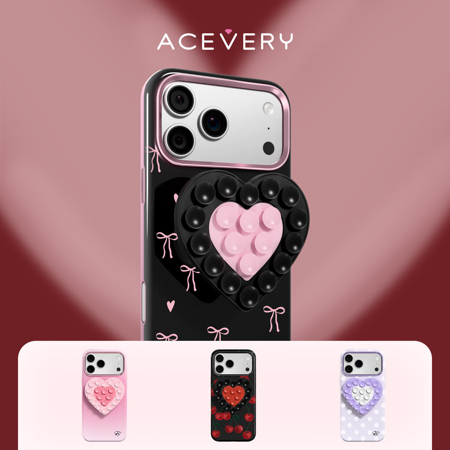 ACEVERY适用苹果17promax手机壳iPhone17pro爱心吸盘支架保护壳可吸附镜面防摔防护高级质感镜头框设计 【Pink Bow绯缎】相机按键全包 iphone17promax