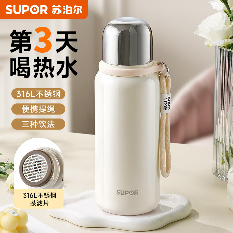 苏泊尔(SUPOR)保温杯大容量高颜值316L不锈钢茶滤泡茶水杯子学生用2026新款 奶油白680ml
