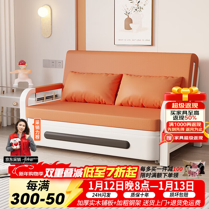 葵竹冉韵沙发床一体两用2025两用小户型伸缩床客厅阳台多功能床新款折叠床 【0.82m普通款】+7CM海绵 【默认爱马橙色】