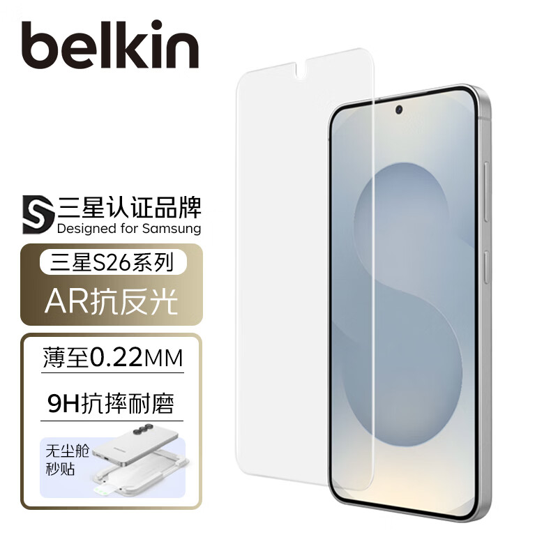 贝尔金(BELKIN)适用三星S26钢化膜 Samsung S26手机膜 三星手机贴膜 抗摔耐磨自然高清 AR抗反光 S26 Ultra