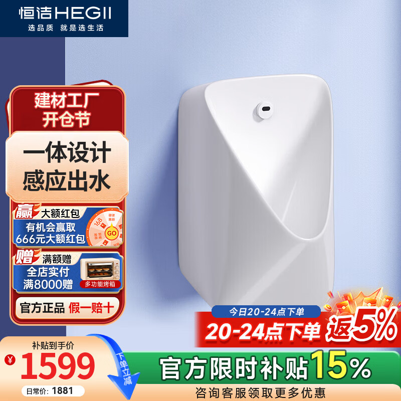 恒洁(HEGII)小便斗挂墙式一体感应明装壁挂式墙排小便器家用男士小便池 GC4032H-055一体感应直流小便斗