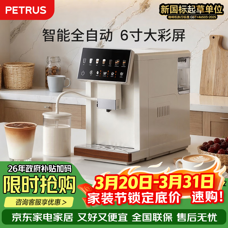 柏翠(petrus)咖啡机研磨一体意式全自动家用办公自动打奶泡彩屏智控自清洁 PE3103