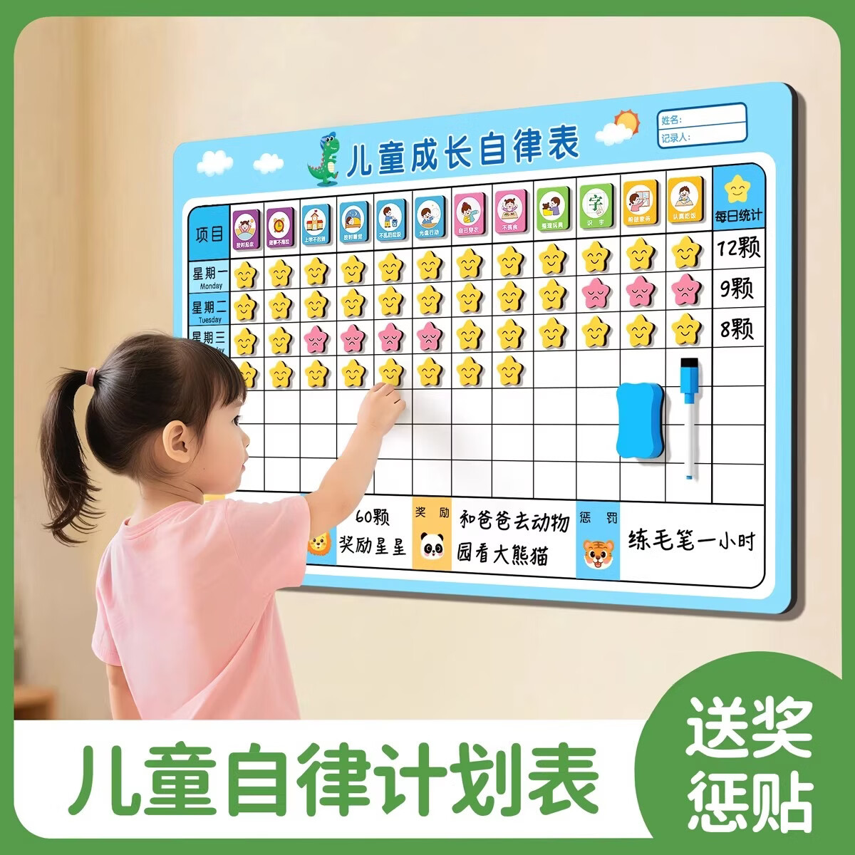 金枝叶儿童成长奖励贴纸自律表兔子升级款学习计划记录表小红花榜墙贴磁性宝宝表扬板好习惯养成激励打卡