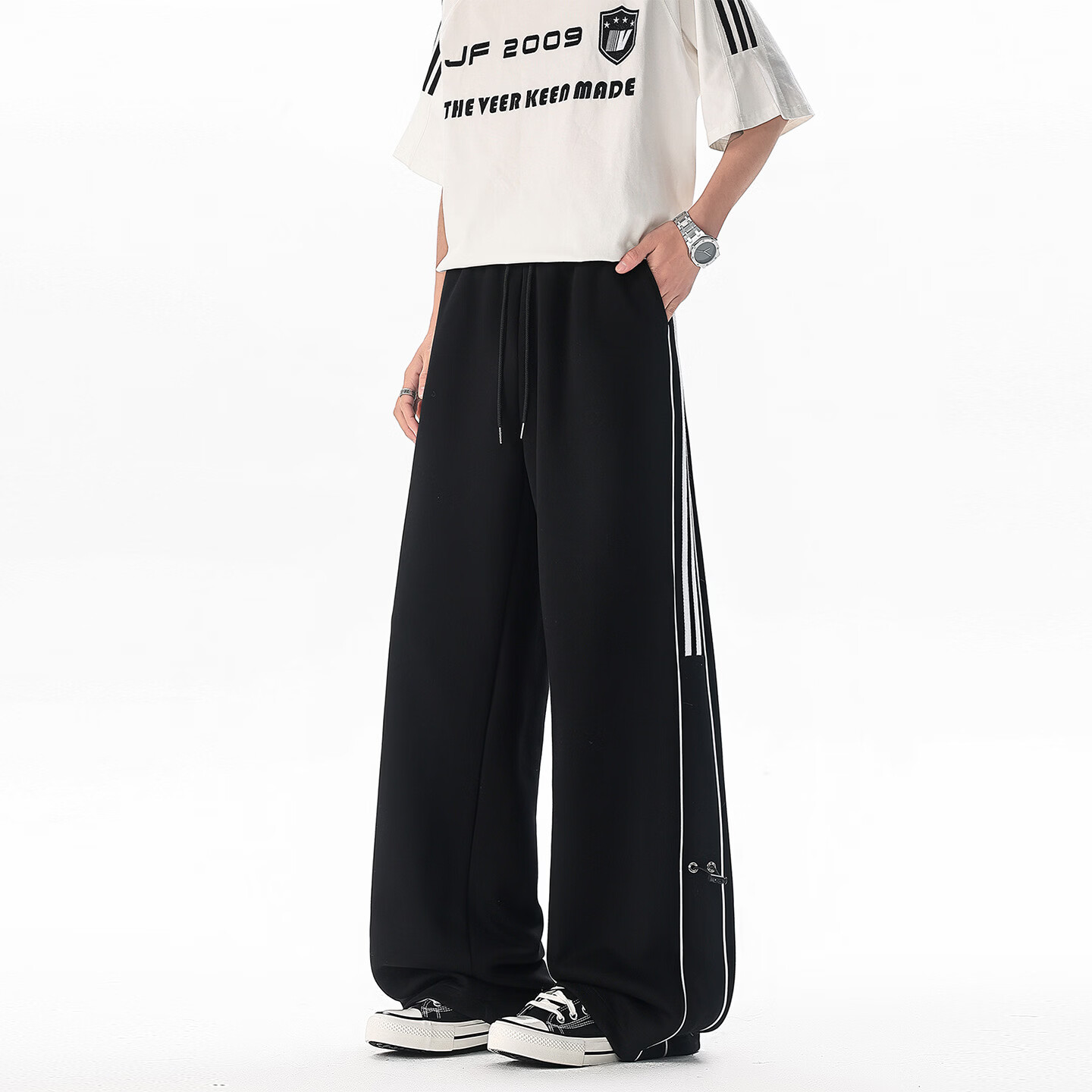 NEW OR MODE美式条纹拼接工装休闲裤男夏季新款潮牌运动宽松百搭阔腿拖地长裤 黑色【高品质】 M 【建议90-110斤】