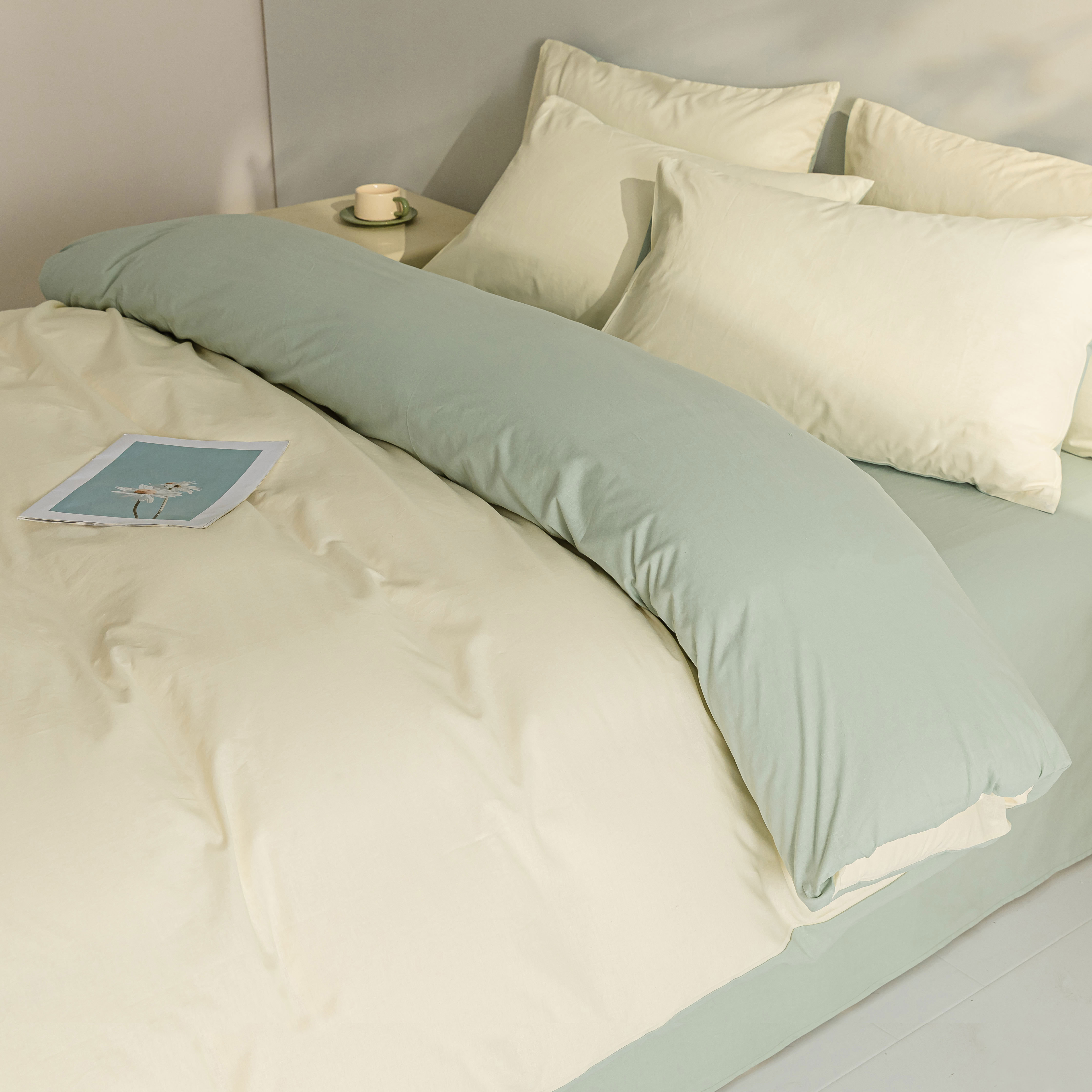 猫人100%全棉纯色被套单件150x200x230纯棉床单被罩家用单双人四件套 多巴胺-奶白中绿 【100%全棉】 200x230cm单被套【亲肤透气】