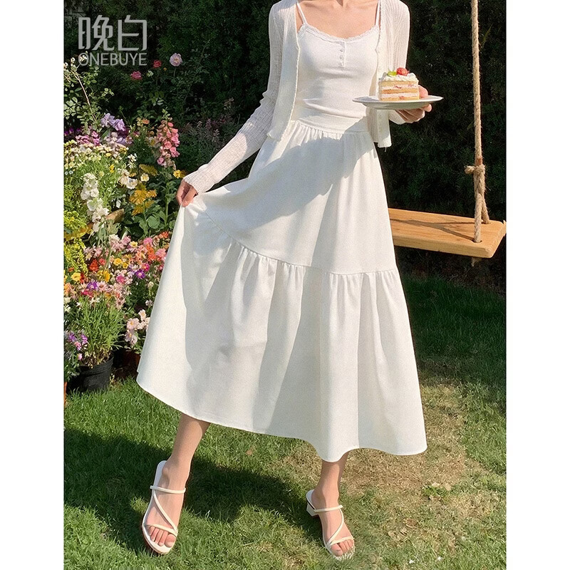 晚白【新品】2026年春款时尚半身裙松紧高腰显瘦垂顺大摆蛋糕裙 白色 XL