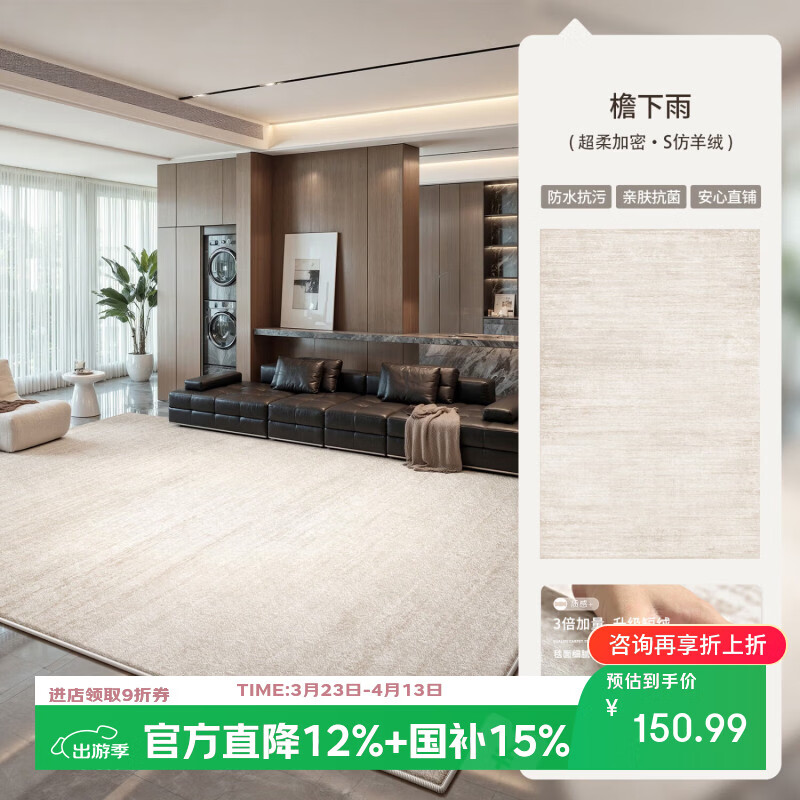 著忆地毯客厅2026新款卧室床边免打理地垫房间隔音轻奢极简高级防水 S波斯绒-檐下雨 140*200cm