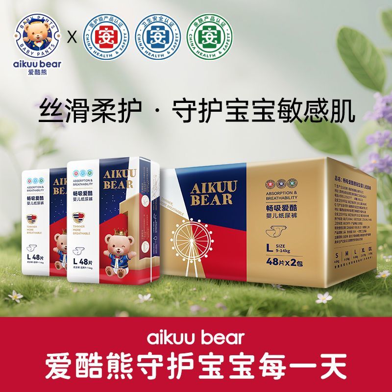 AILUKI【医护级认证】爱酷熊拉拉裤超薄透气纸尿裤XL宝宝绵柔尿不湿3XL 畅吸三安认证【高端 一体裤】L92片