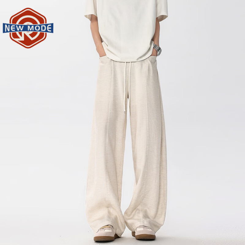 NEW OR MODE莱赛尔冰丝休闲裤子男夏季薄款复古老钱风宽松运动拖地直筒长裤子 麻白色【高品质】 M 【建议90-110斤】