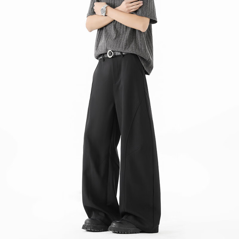 NEW OR MODE美式复古褶皱弯刀西裤男夏季新款潮牌宽松垂感显瘦百搭直筒休闲裤 黑色【高品质】 XL 【建议125-145斤】