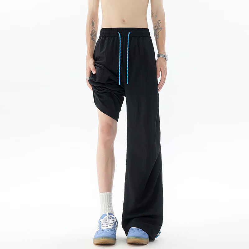 NEW OR MODE美式高级感弯刀休闲裤男夏季垂感运动直筒裤百搭宽松高街阔腿长裤 黑色【高品质】 M 【建议90-110斤】