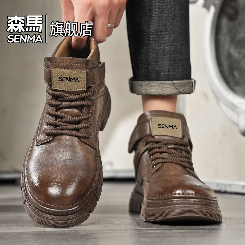 森馬马丁靴男款2026夏季百搭厚底增高新款高帮工装靴男士复古男士靴子 卡其【基础款】 39 标准码数/现货秒发