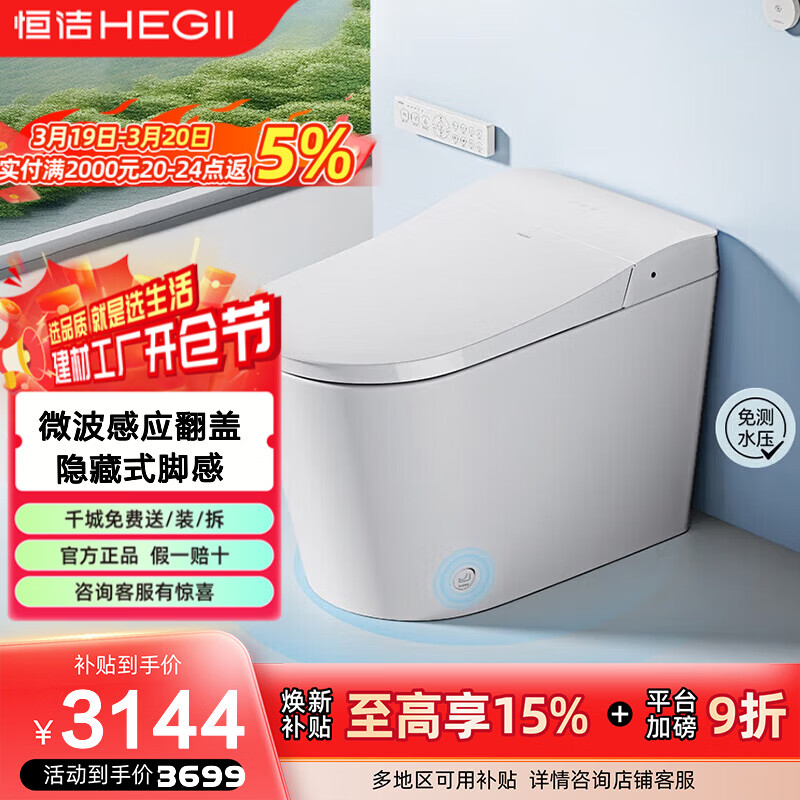 恒洁(HEGII)智能马桶一体机无水压限制脚感冲水座圈加热智能坐便器Z31P 靠近开盖+脚感翻盖冲水Z31P 305/300mm (300-390mm适用)