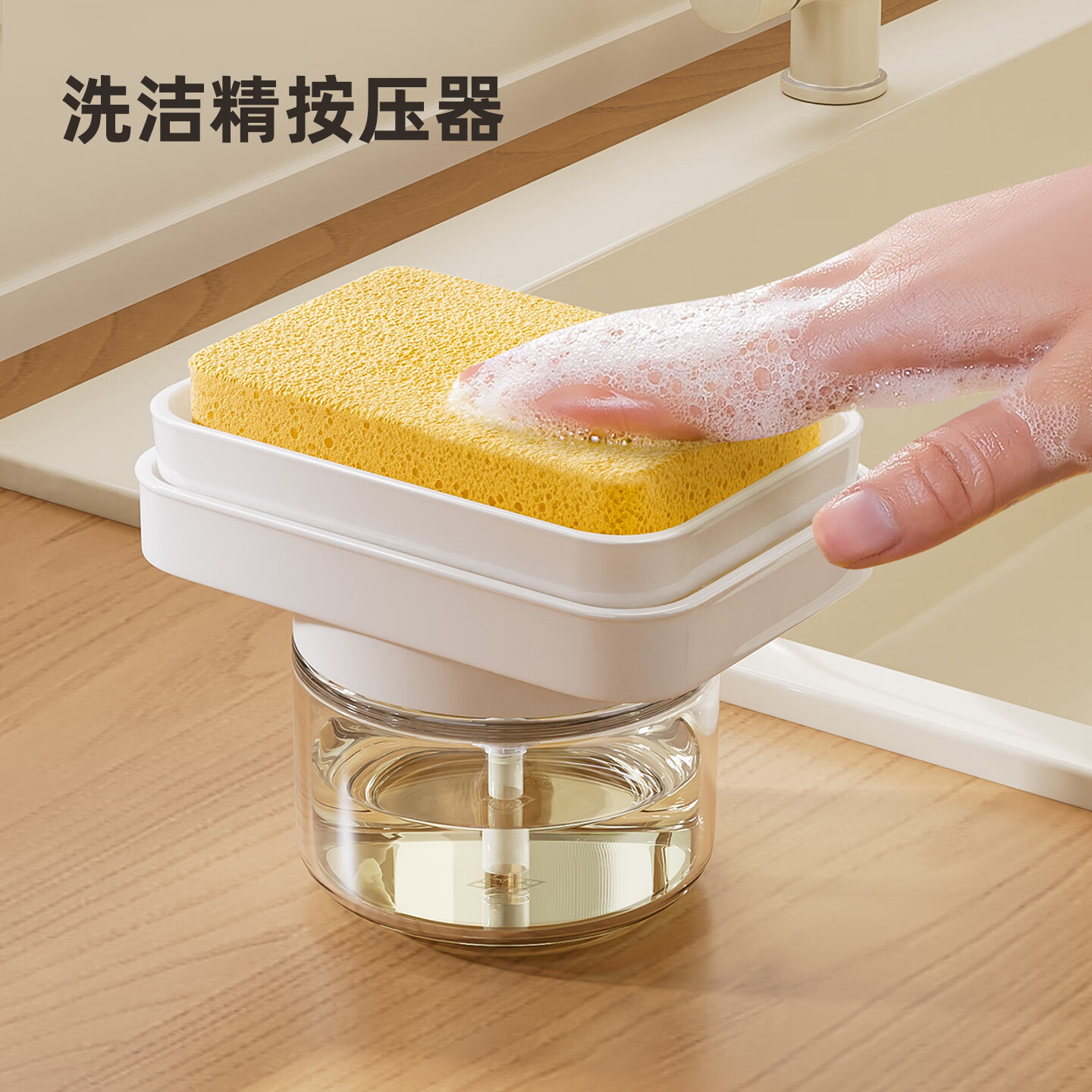 享乐屋洗洁精分装瓶厨房按压瓶压取器洗洁精按压器瓶放洗碗布的置物架 圆形【280ML】