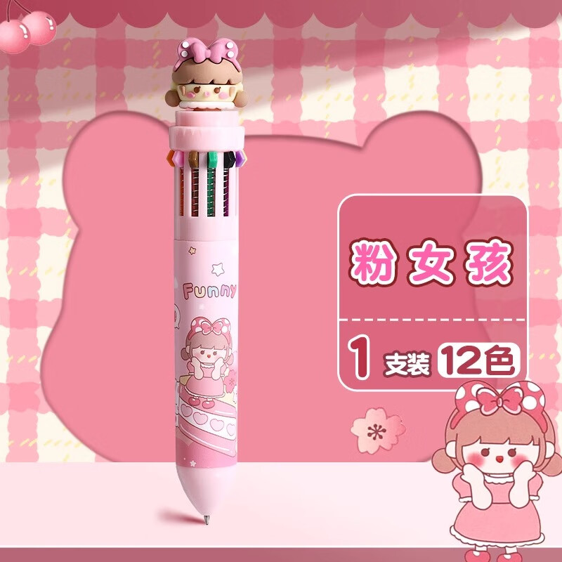 真彩(TRUECOLOR)12色粉女孩圆珠笔卡通可爱创意颜色笔按压式彩色多功能笔多色合一小学生标记号做笔记专用1102D