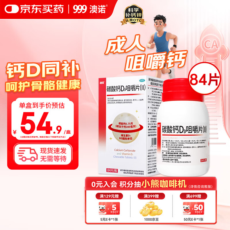 澳诺999碳酸钙d3咀嚼片中老年维生素d成人孕妇钙预防骨质疏松症84片